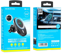 Держатель c беспроводной зарядкой в воздуховод Borofone BH201 15W магнитный черный