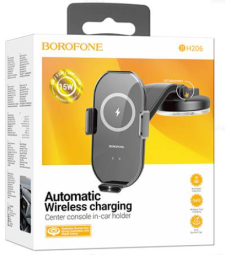 Держатель c беспроводной зарядкой на панель Borofone BH206 15W магнитный черный