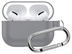 Силиконовый чехол для AirPods Pro c карабином серый