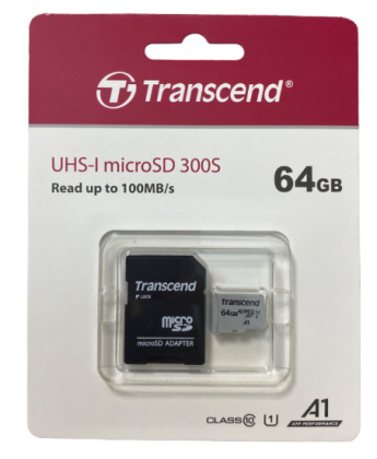 micro SDHC карта памяти Transcend 300S 64GB Class 10 UHS-I 100MB/s с адаптером